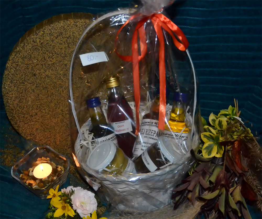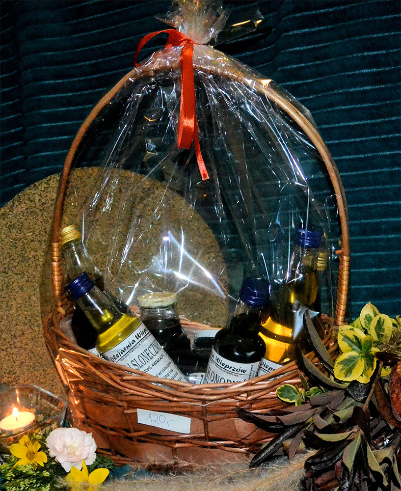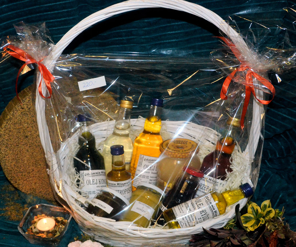 oleje, kosze prezentowe, naturalne, rzemieślnicze przetwory kulinarne